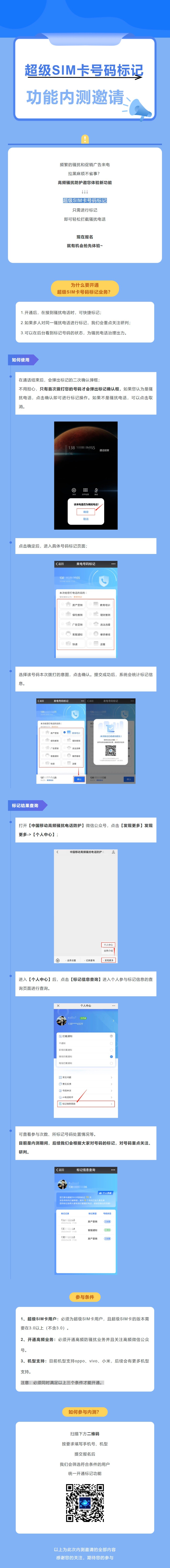 需要注意的是,参与内测的用户必须为超级 SIM 卡用户并开通高频业务,且超级 SIM 卡的版本需要在 3.0 以上(不含 3.0)。此外,该功能目前支持 OPPO、vivo、小米等机型,后续会有更多机型支持。